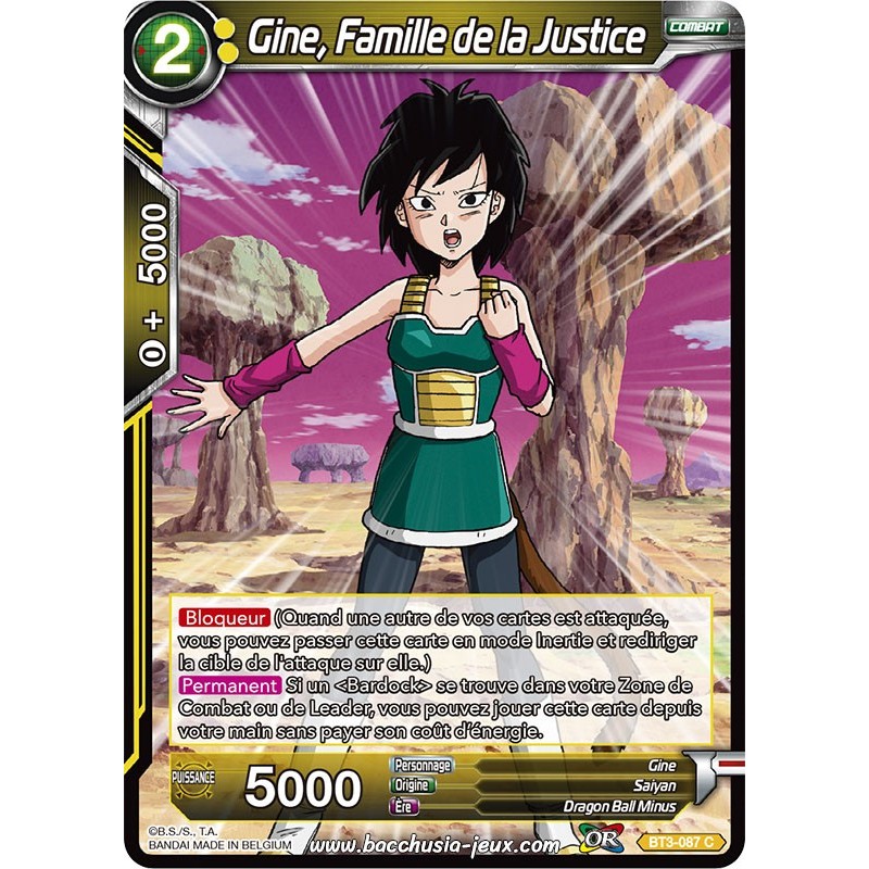 Cartes à l'unité Dragon Ball Super Card Game. Série B03 - Les mondes croisées : Gine, Famille de la Justice BT3-087 C Foil (Brillante)